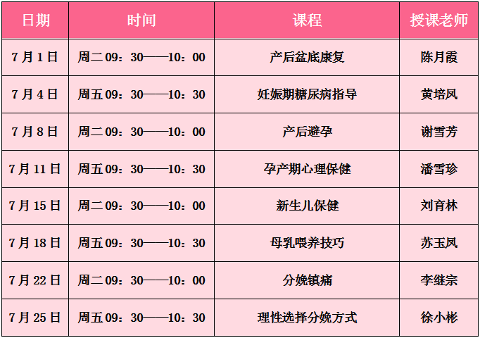 【孕婦學(xué)?!亢谩霸小毕喟椤袐D學(xué)校7月份課程安排表,請(qǐng)查收!