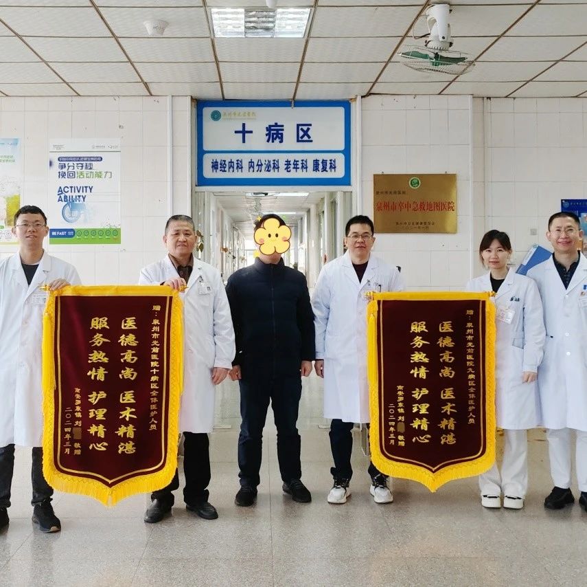3月1日,我院呼吸與危重癥醫(yī)學(xué)科及神經(jīng)內(nèi)科分別收到寫著“醫(yī)德高尚 醫(yī)術(shù)精湛 服務(wù)熱情 護理精心”的錦旗。原來這錦旗是來自千里之外的劉先生特意從外地寄過來,以表達對九病區(qū)和十病區(qū)醫(yī)護人員反應(yīng)迅速、醫(yī)術(shù)精湛的感謝之情!2月下旬,劉先生到省外醫(yī)院復(fù)查,接診醫(yī)生....…