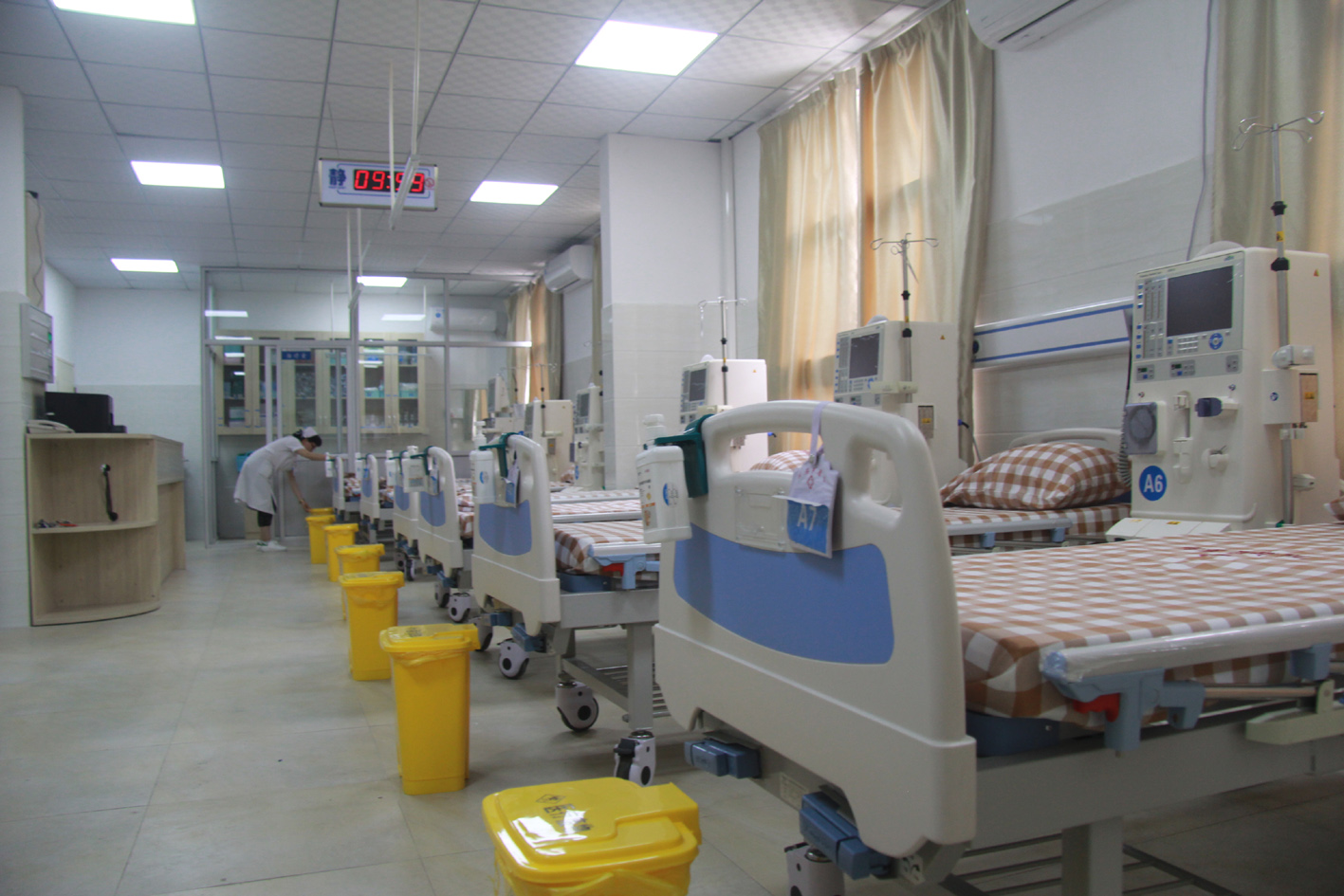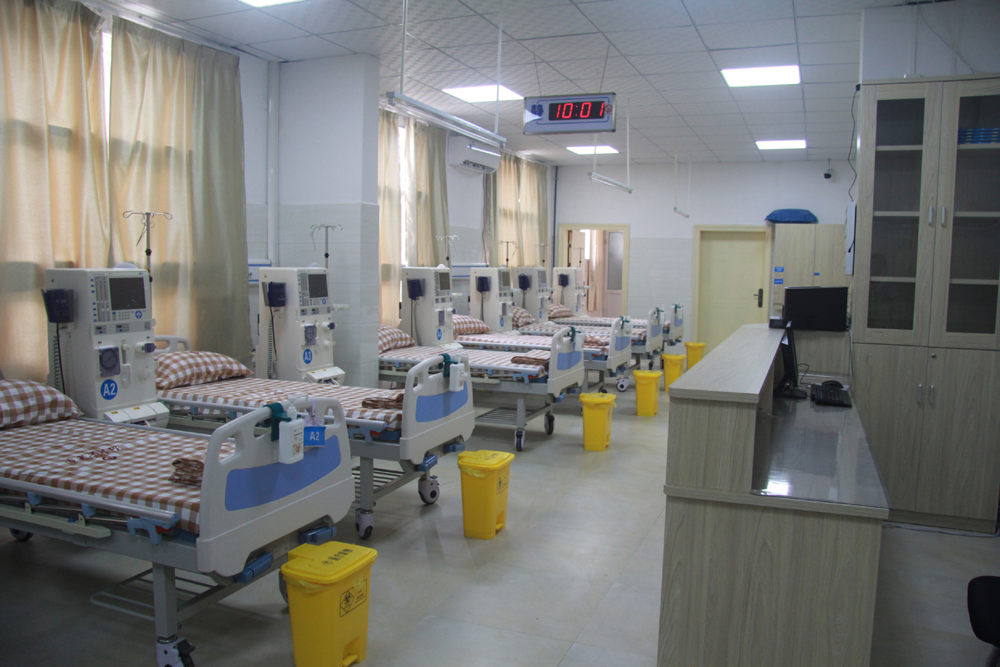 經(jīng)過一年多、投入300余萬元的設(shè)備設(shè)施建設(shè),數(shù)批專業(yè)醫(yī)務(wù)人員外出進(jìn)修培訓(xùn),并經(jīng)泉州市衛(wèi)生和計(jì)劃生育委員會(huì)組織專家進(jìn)行查驗(yàn)收后批復(fù)同意,以及醫(yī)保管理部門的備案,我院首期配備了10臺(tái)的費(fèi)森尤斯5008血透機(jī)——源自德國(guó)最新研發(fā)的頂級(jí)血透機(jī)、寬敞明亮設(shè)施齊全的診療場(chǎng)所和擁有業(yè)務(wù)素養(yǎng)較高醫(yī)療團(tuán)隊(duì)的血液透析服務(wù)項(xiàng)目的開展,為周邊腎衰患者及其家屬帶來福音,不僅方便就近就醫(yī),而且可報(bào)支相應(yīng)醫(yī)保費(fèi)用,減輕舟車出行、家屬護(hù)送和醫(yī)藥費(fèi)用等方面的經(jīng)濟(jì)負(fù)擔(dān)。