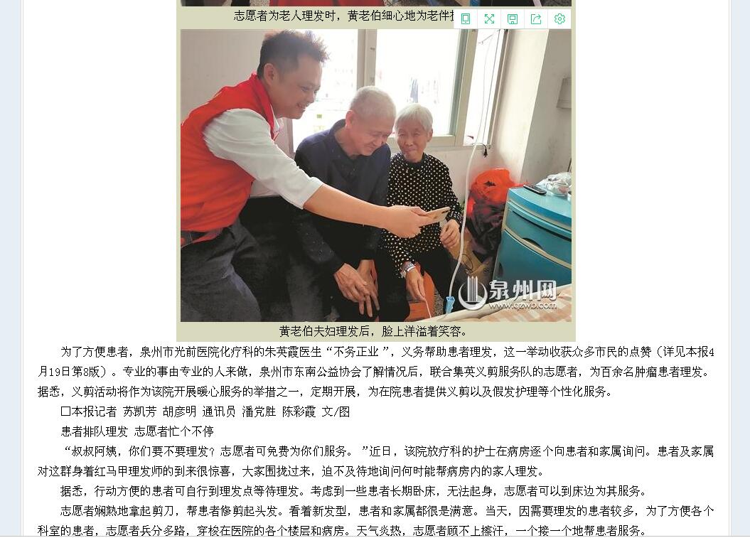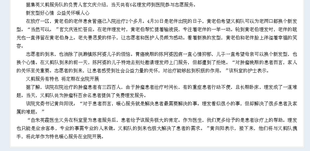 該院黨委書記黃向陽說:“對(duì)于患者而言,暖心服務(wù)就是解決患者最需要解決的事。理發(fā)看似很小的事,但卻解決了很多患者及家屬的難題。”