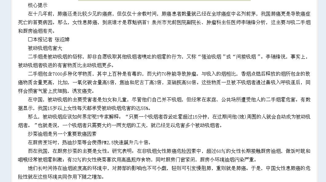 從不吸煙 為什么還會得肺癌(《泉州晚報》)