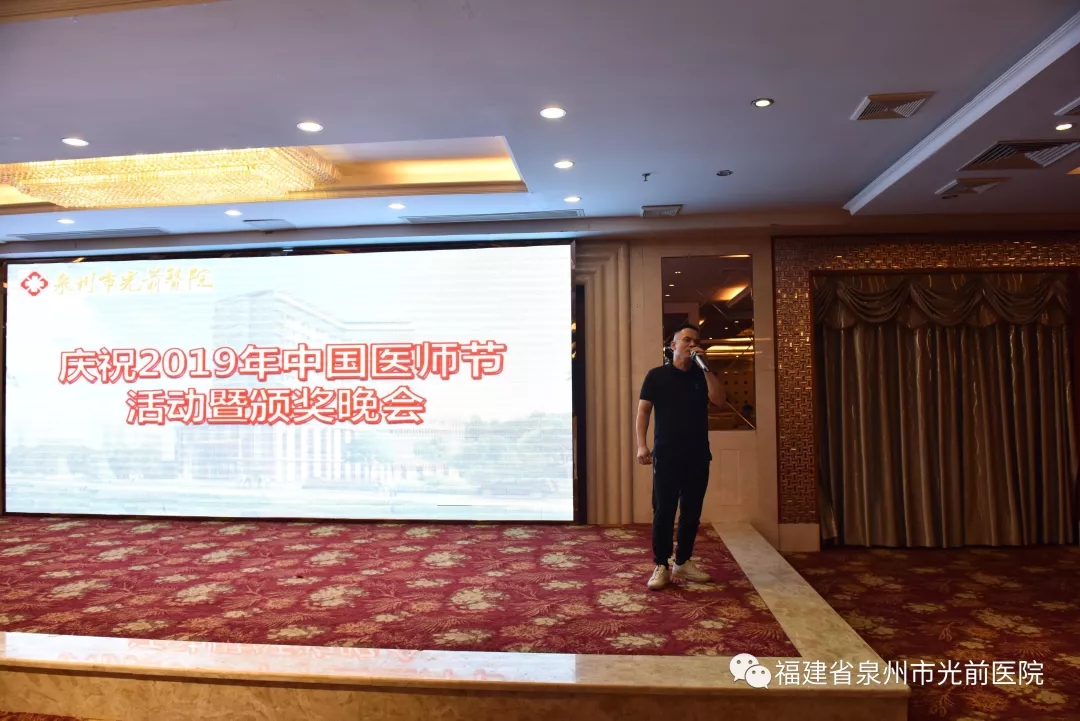 8月20日,慶祝2019年中國(guó)醫(yī)師節(jié)文藝匯演暨頒獎(jiǎng)晚會(huì)如期召開(kāi)。李懷陽(yáng)副院長(zhǎng)主持開(kāi)幕式,院黨委書(shū)記兼副院長(zhǎng)黃向陽(yáng)致詞,向全體醫(yī)師同仁致以節(jié)日的問(wèn)候和崇高的敬意,勉勵(lì)大家繼續(xù)弘揚(yáng)習(xí)近平總書(shū)記提出的新時(shí)代醫(yī)療衛(wèi)生職業(yè)精神,不忘初心,以滿(mǎn)腔的熱情全身心地投入到為病人服務(wù)中,為醫(yī)院新一輪跨躍式發(fā)展貢獻(xiàn)力量。隨后進(jìn)入“最美醫(yī)師特別獎(jiǎng)”頒獎(jiǎng)議程,黃向陽(yáng)書(shū)記向獲得者梅忠禮主任醫(yī)師頒發(fā)了榮譽(yù)證書(shū)。梅忠禮醫(yī)生現(xiàn)任醫(yī)務(wù)科副科長(zhǎng)、泌尿外科主任醫(yī)師,他認(rèn)真對(duì)待每一位病患,視病人如親人,以?xún)?yōu)良的作風(fēng)、精湛的技術(shù)、高尚的醫(yī)德、優(yōu)質(zhì)的服務(wù),時(shí)刻用行動(dòng)詮釋醫(yī)者仁心,贏得了廣大患者的贊譽(yù)和同事的好評(píng),2018年榮獲泉州市“最美醫(yī)生”榮譽(yù)稱(chēng)號(hào)。