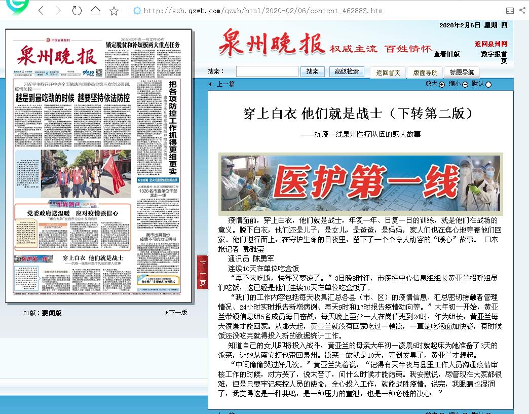 日夜輪班竭盡全力抗疫情(《泉州晚報(bào)》)