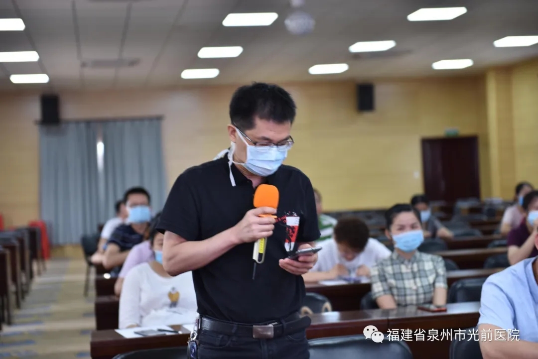 座談會(huì)上,援鄂人員李婷婷、陳雅真分別介紹了支援武漢戰(zhàn)“疫”的心路歷程。李婷婷同志是一名黨員,她用真摯的情感、樸實(shí)的語言講述了大年初二毫不猶豫主動(dòng)請(qǐng)纓馳援武漢,成為福建省第一批援鄂醫(yī)療隊(duì)隊(duì)員并擔(dān)任泉州醫(yī)療隊(duì)護(hù)理領(lǐng)隊(duì),分享了在武漢58天的日夜奮戰(zhàn),在隔離病房與時(shí)間賽跑,與病魔抗?fàn)?,把溫暖希望傳遞給病人的難忘時(shí)刻,期間及回院后受到黨、社會(huì)各界、領(lǐng)導(dǎo)、同事、家人諸多關(guān)愛和支持的感人經(jīng)歷;陳雅真也娓娓道來,回顧了武漢抗疫的經(jīng)歷和一個(gè)個(gè)感人肺腑的故事,講述了在疫情防控一線深切感受到了黨組織強(qiáng)大的凝聚力和號(hào)召力,親眼看見了很多共產(chǎn)黨員沖鋒在前,不畏艱險(xiǎn),她備受鼓舞,毅然火線遞交入黨申請(qǐng)書,許下戰(zhàn)“疫”誓言!
