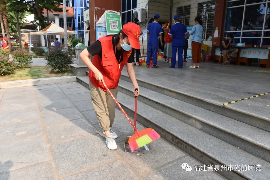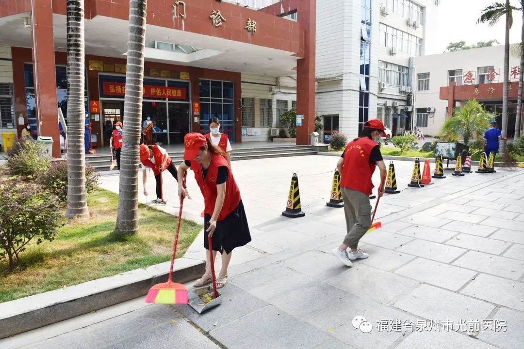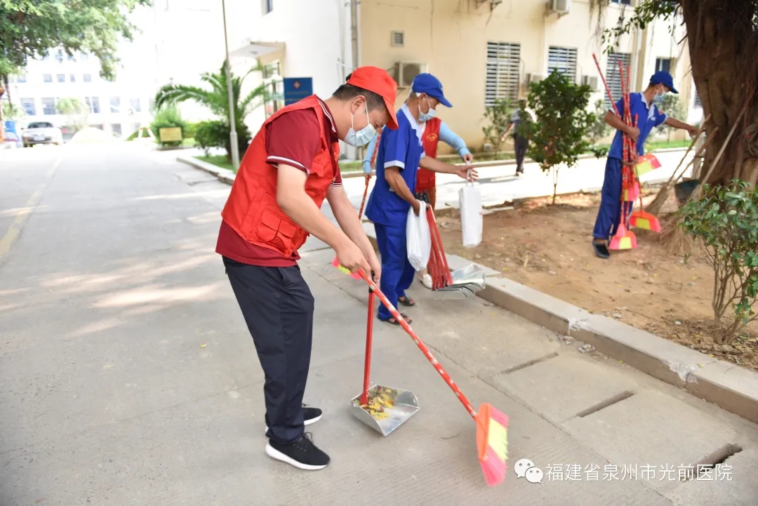 為助推泉州市創(chuàng)建全國文明城市、國家衛(wèi)生城市,進一步引導(dǎo)廣大黨團員、志愿者積極參與到文明城市“提升攻堅”行動中,繼續(xù)推進我院省級文明單位創(chuàng)建活動,提升醫(yī)院環(huán)境衛(wèi)生狀況,以整潔的院容院貌、優(yōu)質(zhì)的醫(yī)療秩序,更好地為廣大人民群眾提供衛(wèi)生健康服務(wù),9月1日至4日,我院黨委積極倡導(dǎo)“煙頭不落地、垃圾不亂扔”,分批次組織黨團員志愿者在院內(nèi)清理垃圾和衛(wèi)生死角,大家共同從自身做起,從小事做起,守護環(huán)境衛(wèi)生,告別不文明陋習(xí),積極營造文明健康的診療工作環(huán)境。