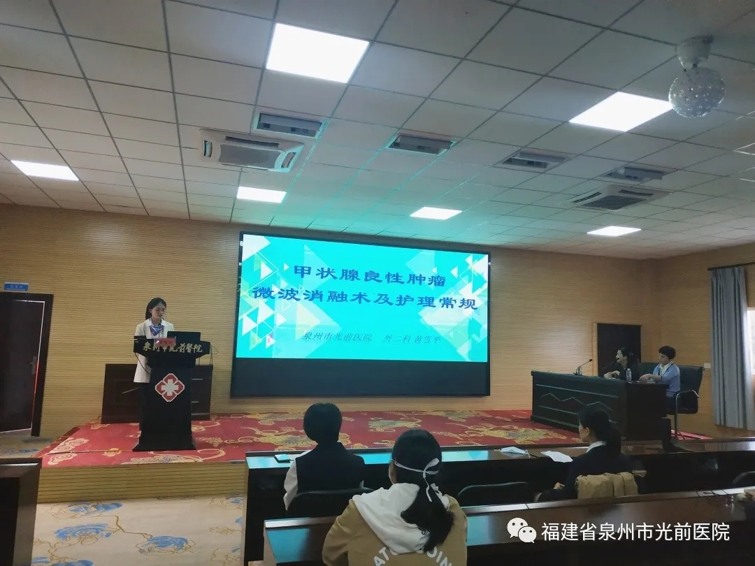 本次培訓班邀請泉州市第一醫(yī)院護理部吳碧瑜主任及我院5位優(yōu)秀護理骨干進行授課。講座內容豐富、新穎,緊貼臨床護理工作,內容包括《臨床護理風險管理與防范策略》《造口病人的康復指導》《靜脈治療的護理新進展》《甲狀腺良性腫瘤的微波消融術》《射頻消融術治療心律失常的護理》《癌性相關性疲乏》等,從不同角度探討和傳授了護理工作中一些新的知識理念,進一步指導了臨床護理實踐。