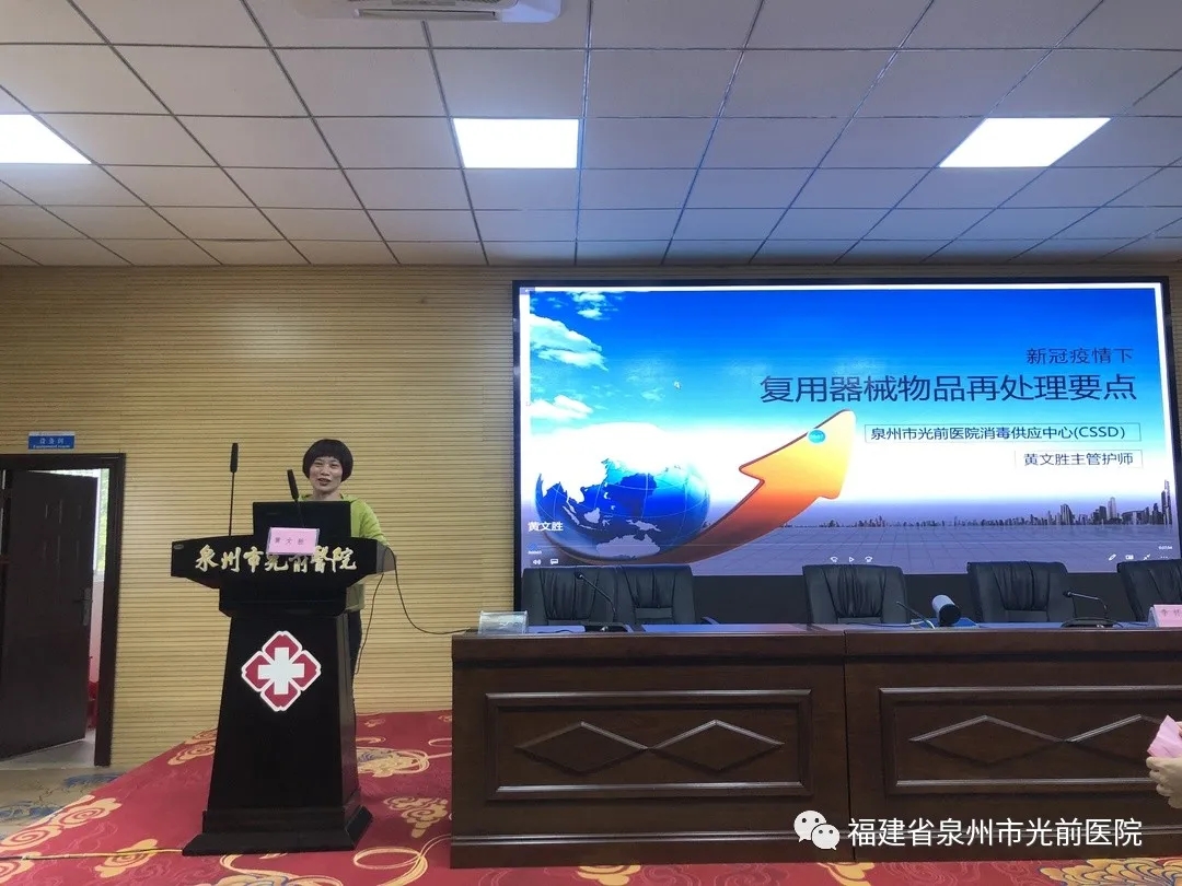 消毒供應(yīng)中心被稱為醫(yī)院的心臟,是各種無菌器械、輔料等無菌物品的保障科室,也是預(yù)防和控制醫(yī)院感染的重要科室。我院消毒供應(yīng)中心副主任護(hù)師黃文勝從新冠肺炎疫情下復(fù)用器械物品再處理要點(diǎn)出發(fā),深入淺出地剖析了新冠病毒特點(diǎn)對確診或疑似患者復(fù)用器械再處理的流程及消毒供應(yīng)中心各崗位防護(hù)要求等。