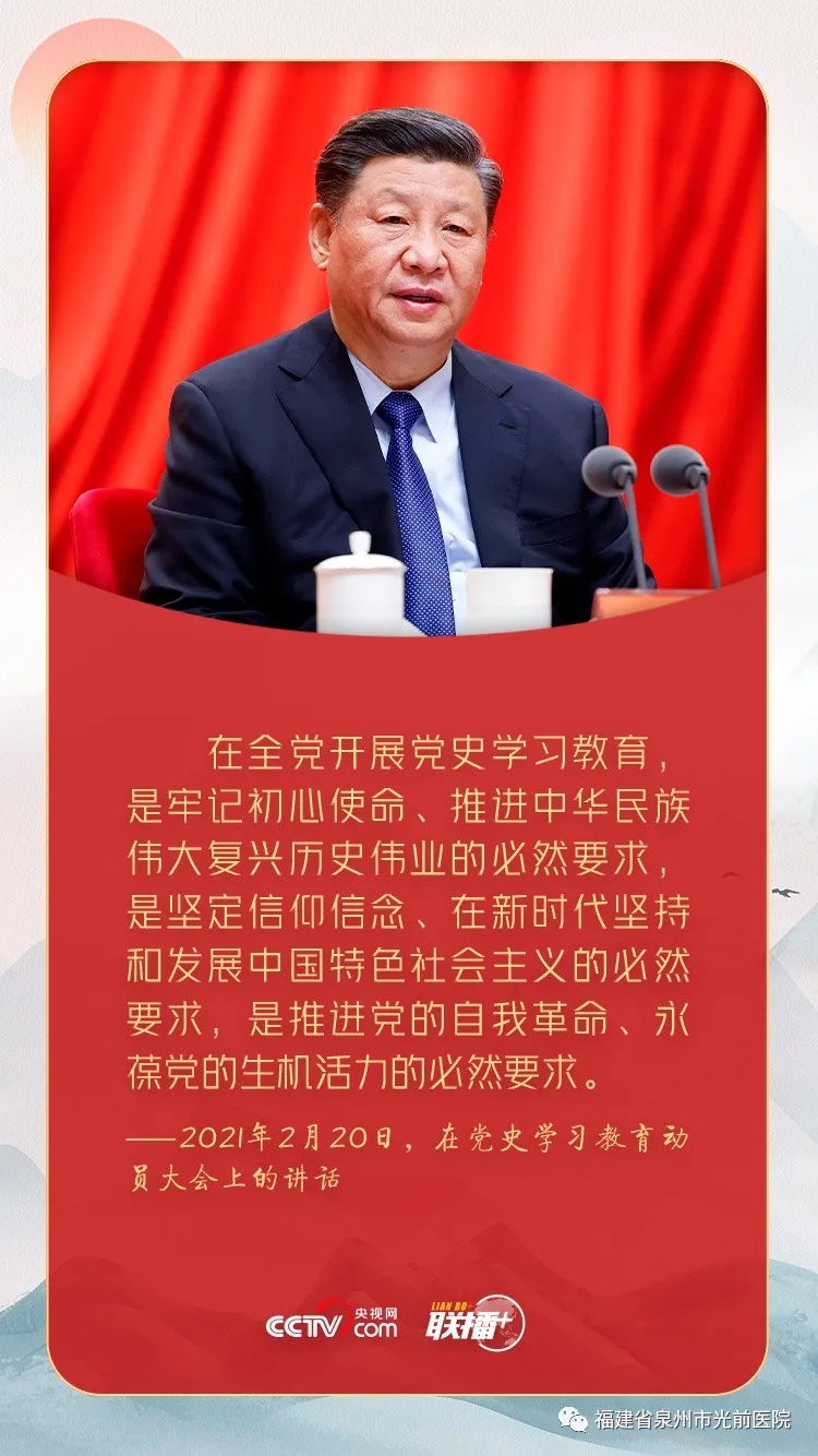 “在全黨開展黨史學習教育,是黨中央立足黨的百年歷史新起點、統(tǒng)籌中華民族偉大復興戰(zhàn)略全局和世界百年未有之大變局、為動員全黨全國滿懷信心投身全面建設社會主義現(xiàn)代化國家而作出的重大決策?!?/span>