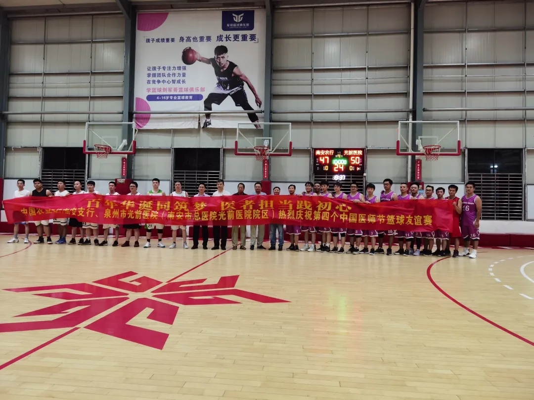 2020年8月20日晚上6:30,網(wǎng)紅的南安軍哥籃球館,一場以銀醫(yī)共慶第四個中國醫(yī)師節(jié)的籃球友誼賽準(zhǔn)時哨響。參賽的光前醫(yī)院片區(qū)籃球隊15位隊員來自我院和南安市總醫(yī)院光前醫(yī)院片區(qū)5個衛(wèi)生院的醫(yī)務(wù)員工,南安農(nóng)行籃球隊隊員來自中國農(nóng)業(yè)銀行南安支行本部和下屬支行的干部職工。