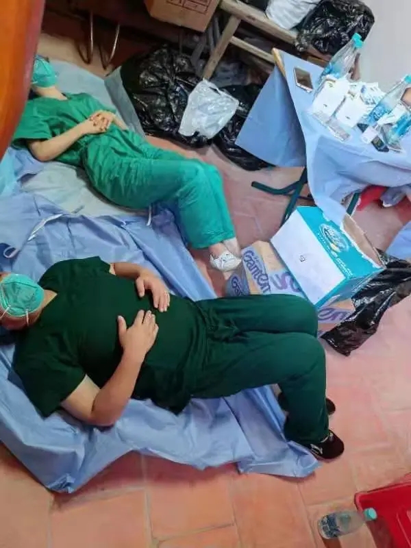 “今天最高氣溫37度,從零晨1點(diǎn)出發(fā),4點(diǎn)抵達(dá)酒店,4點(diǎn)半接到任務(wù),就急忙整理出行物資,5點(diǎn)半出發(fā),一到目的地發(fā)現(xiàn)村民們已經(jīng)自覺地排好隊(duì),隊(duì)員們立即投入工作。由于高溫天氣,加上不透風(fēng)的防護(hù)服和不透氣的N95口罩,怕隊(duì)友們中暑,基本隔十幾分鐘就需問(wèn)候下隊(duì)友,發(fā)現(xiàn)一隊(duì)友頭出很多汗,有點(diǎn)虛脫,快要撐不住了,趕緊扶一邊休息,當(dāng)她脫下防護(hù)衣,衣服都濕到褲腳了。有些隊(duì)員也是有輕微中暑,仍然咬牙堅(jiān)持,沒(méi)有一絲抱怨,盡自己所能努力做好工作?!?/span>