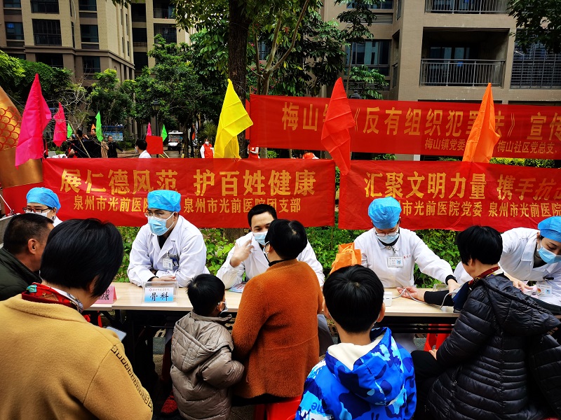 臨近春節(jié),為深入開展黨史學(xué)習(xí)教育,把“我為群眾辦實(shí)事”做實(shí)做細(xì),進(jìn)一步踐行醫(yī)療衛(wèi)生系統(tǒng)“展仁德風(fēng)范、護(hù)百姓健康”福建新風(fēng)正氣“名片”,我院攜手梅山社區(qū)等單位開展了“我們的節(jié)日·春節(jié)”健康利民志愿同行活動(dòng)。