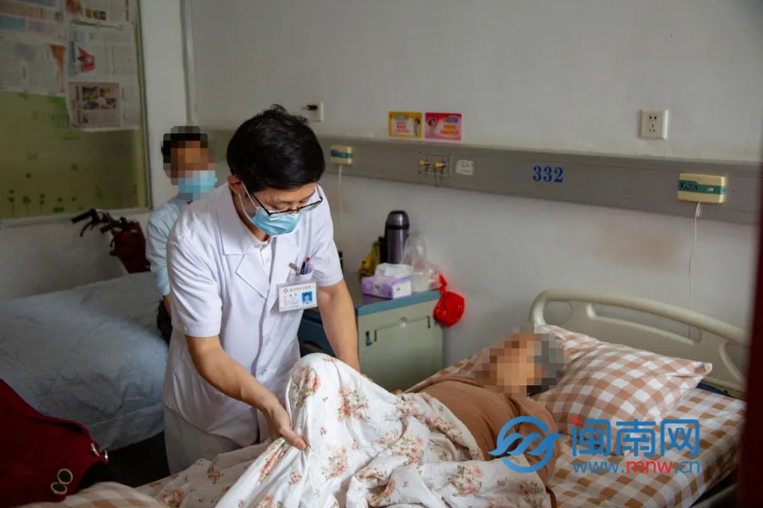 徐堅(jiān)在查房,讓病人活動(dòng)活動(dòng)腿腳