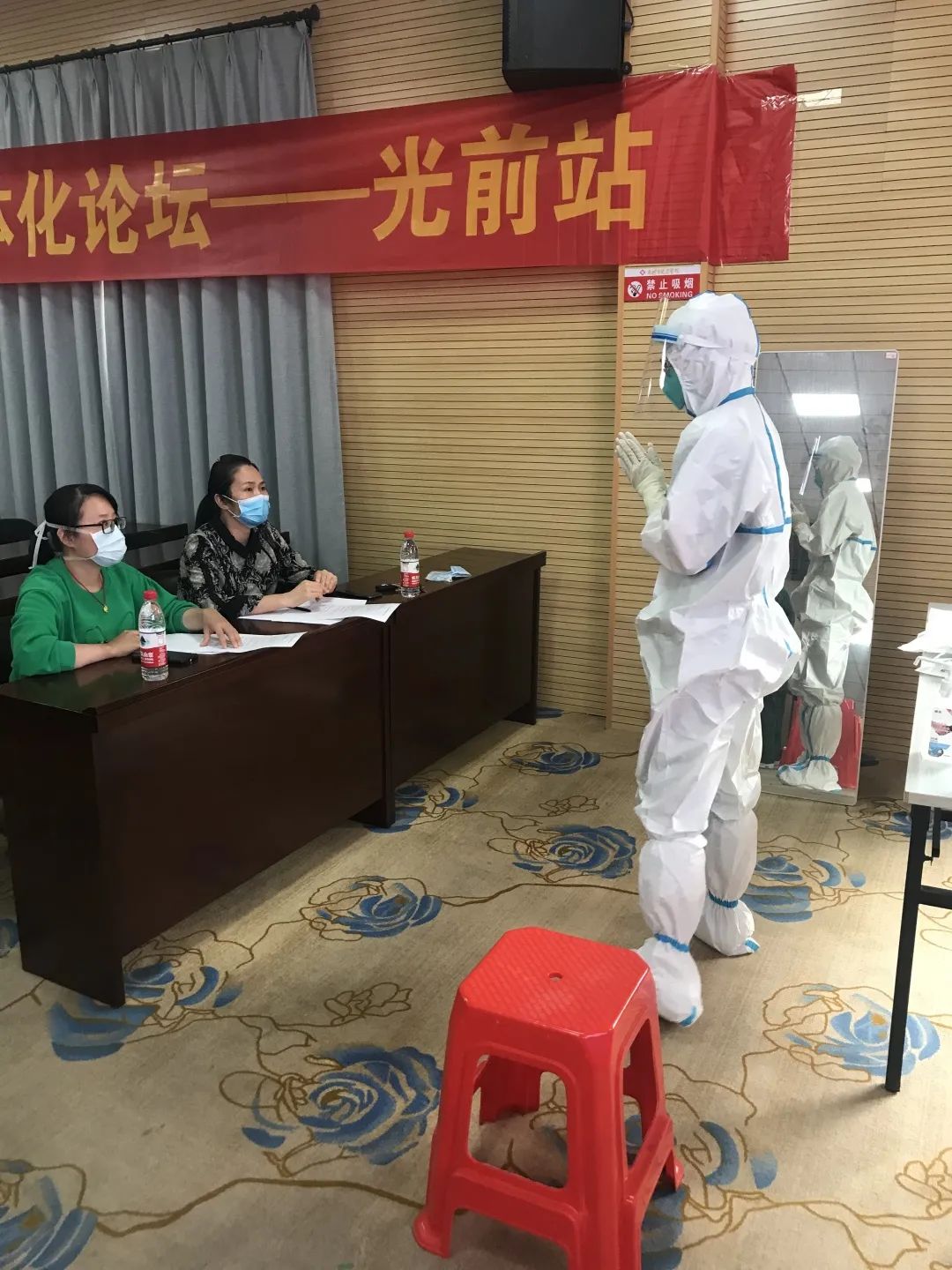 5月6日,我院開展了“穿脫防護(hù)服”操作技能競賽,來自一線護(hù)理崗位40余位護(hù)士參加。比賽嚴(yán)格按照穿脫防護(hù)服程序規(guī)范操作。穿戴N95口罩、防護(hù)帽、防護(hù)服、手套、防護(hù)眼鏡、面屏……選手們沉著冷靜、動作嫻熟,全程手部消毒,確保動作規(guī)范,防護(hù)到位,最后嚴(yán)格按照步驟脫棄防護(hù)服。通過以賽促練、以練促學(xué),提高我院護(hù)理人員的專業(yè)素養(yǎng)、業(yè)務(wù)水平,進(jìn)一步增強(qiáng)護(hù)理團(tuán)隊的凝聚力、戰(zhàn)斗力。