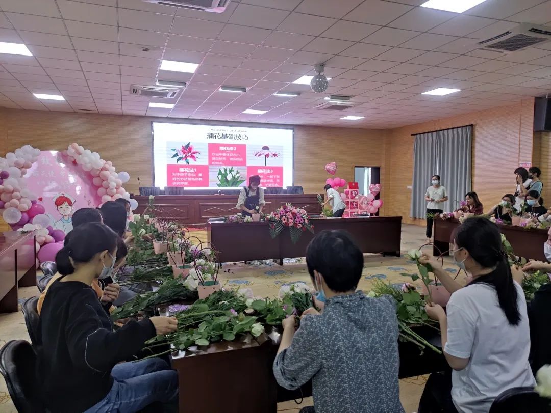 一花一世界,一葉一乾坤,花道是中國傳統(tǒng)修身養(yǎng)性、陶冶身心的生活藝術(shù)。5月11日下午,藝術(shù)插花趣味活動在行政辦公樓四樓多功能廳如期舉行。花藝?yán)蠋熤v解插花藝術(shù)與技巧并現(xiàn)場教授指導(dǎo)。一枝一束,一插一剪,護(hù)士姐妹們動手體驗了插花的樂趣。從修剪、整枝,到根據(jù)不同色彩、形狀有層次的進(jìn)行搭配并將一朵朵的鮮花錯落有致地插在花籃中,構(gòu)造出一幅幅充滿和諧美的雅致作品。在這個過程中,護(hù)士姐妹們不僅欣賞到花的自然美,更舒緩了工作壓力,享受了一段芬芳慢時光。