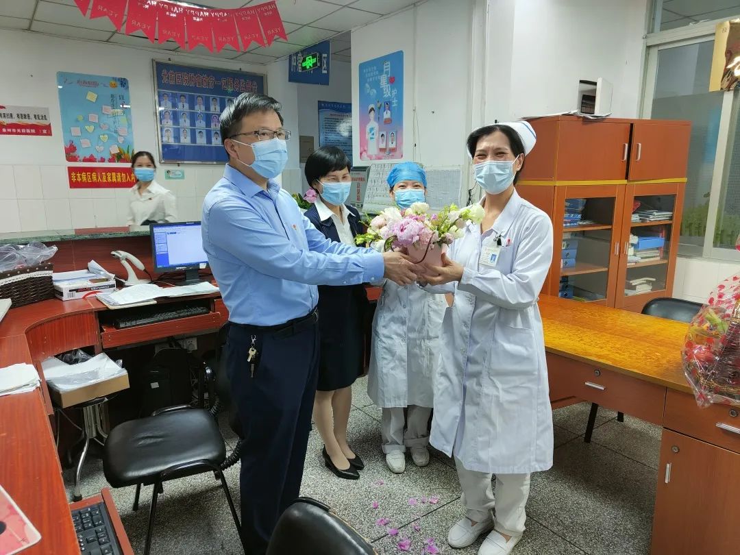 5月12日上午,院領(lǐng)導(dǎo)帶隊到各個科室慰問堅守崗位忙碌的一線護(hù)理人員,向她(他)們致以崇高的敬意和節(jié)日問候!感謝她(他)們在平凡的護(hù)理崗位上辛勤耕耘、不忘初心、堅守崗位,特別是疫情發(fā)生以來,白衣執(zhí)甲、逆行出征、無畏奉獻(xiàn),用實際行動踐行了“敬佑生命、救死扶傷、甘于奉獻(xiàn)、大愛無疆”的崇高精神,是當(dāng)之無愧的“白衣天使”!