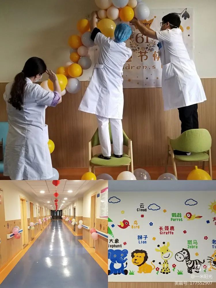 六一兒童節(jié)前夕,兒科全體工作人員用五彩斑瀾的氣球,漂亮的掛件和墻貼精心布置,把病區(qū)變成了一個童趣十足的兒童樂園,充滿節(jié)日氣氛。暖心的護士姐姐們還為小朋友準(zhǔn)備了許多小驚喜:玩偶、氣球、變形金剛、切蔬果樂等。