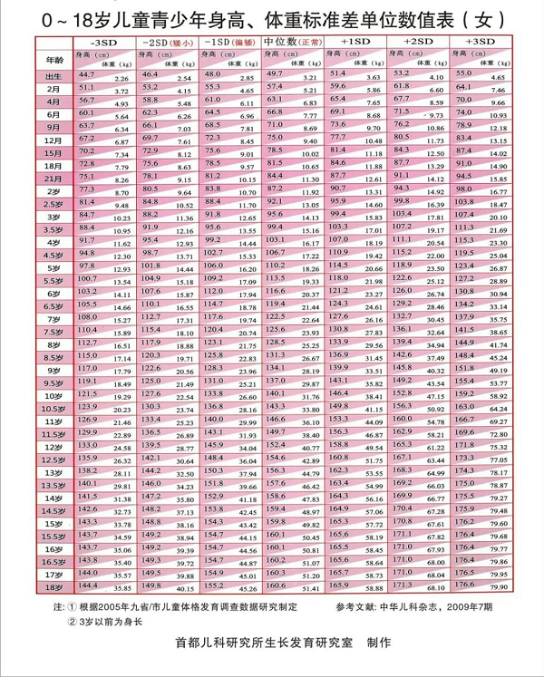 根據(jù)以下身高對照表,就能清楚孩子目前的身高水平