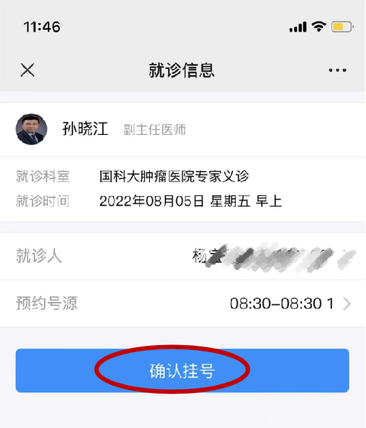 ⑥選擇就診人及號(hào)源,確認(rèn)掛號(hào)