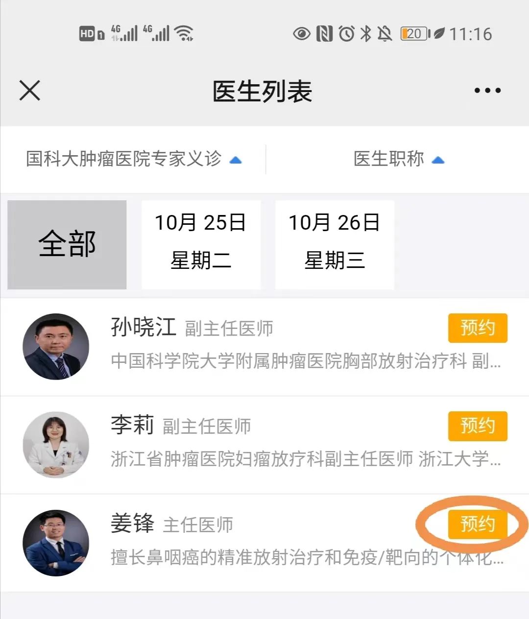 ⑤選擇專家進(jìn)行預(yù)約