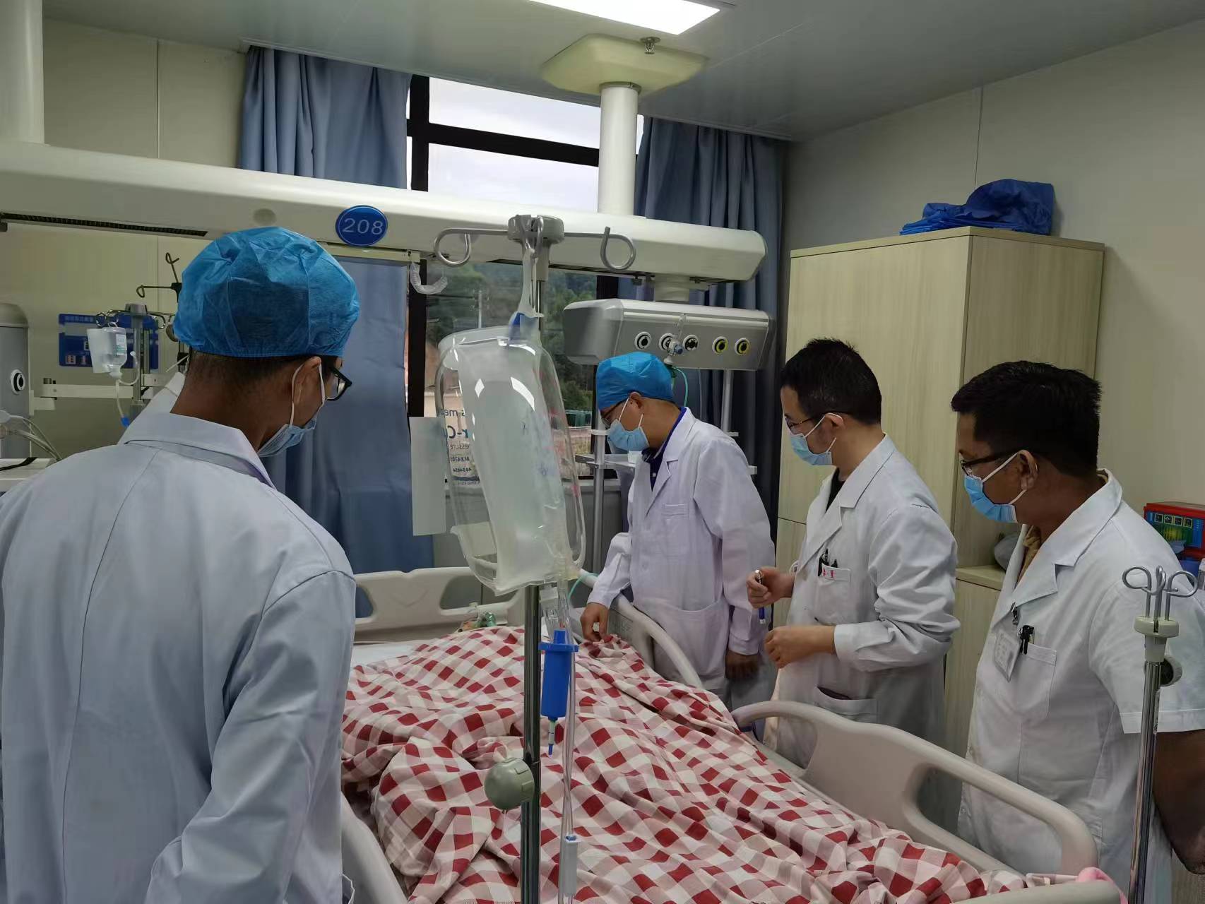 患者潘先生,因騎車(chē)摔倒入院搶救。入院時(shí),潘先生神志已模糊,無(wú)法對(duì)答,經(jīng)相關(guān)檢驗(yàn)檢查,提示顱內(nèi)多發(fā)損傷,我院神經(jīng)外科MDT團(tuán)隊(duì)緊急會(huì)診,評(píng)估病情,并給予緊急處理。潘先生情況不容樂(lè)觀,顱內(nèi)壓明顯增加,出現(xiàn)腦疝,若不緊急手術(shù),顱內(nèi)壓可進(jìn)一步增加,到時(shí)將造成不可逆腦損傷,甚至危及生命。家屬了解到我院與福醫(yī)大附二院建立神經(jīng)外科專(zhuān)科聯(lián)盟,每天有專(zhuān)家值班在線指導(dǎo),可緊急來(lái)院幫扶搶救,遂放棄轉(zhuǎn)院,決定入院治療。