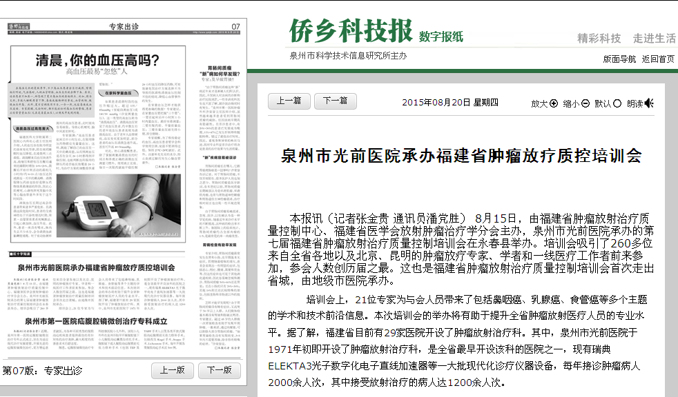 我院首次承辦省級學(xué)術(shù)活動(《泉州晚報》、《福建衛(wèi)生報》、《僑鄉(xiāng)科技報》)