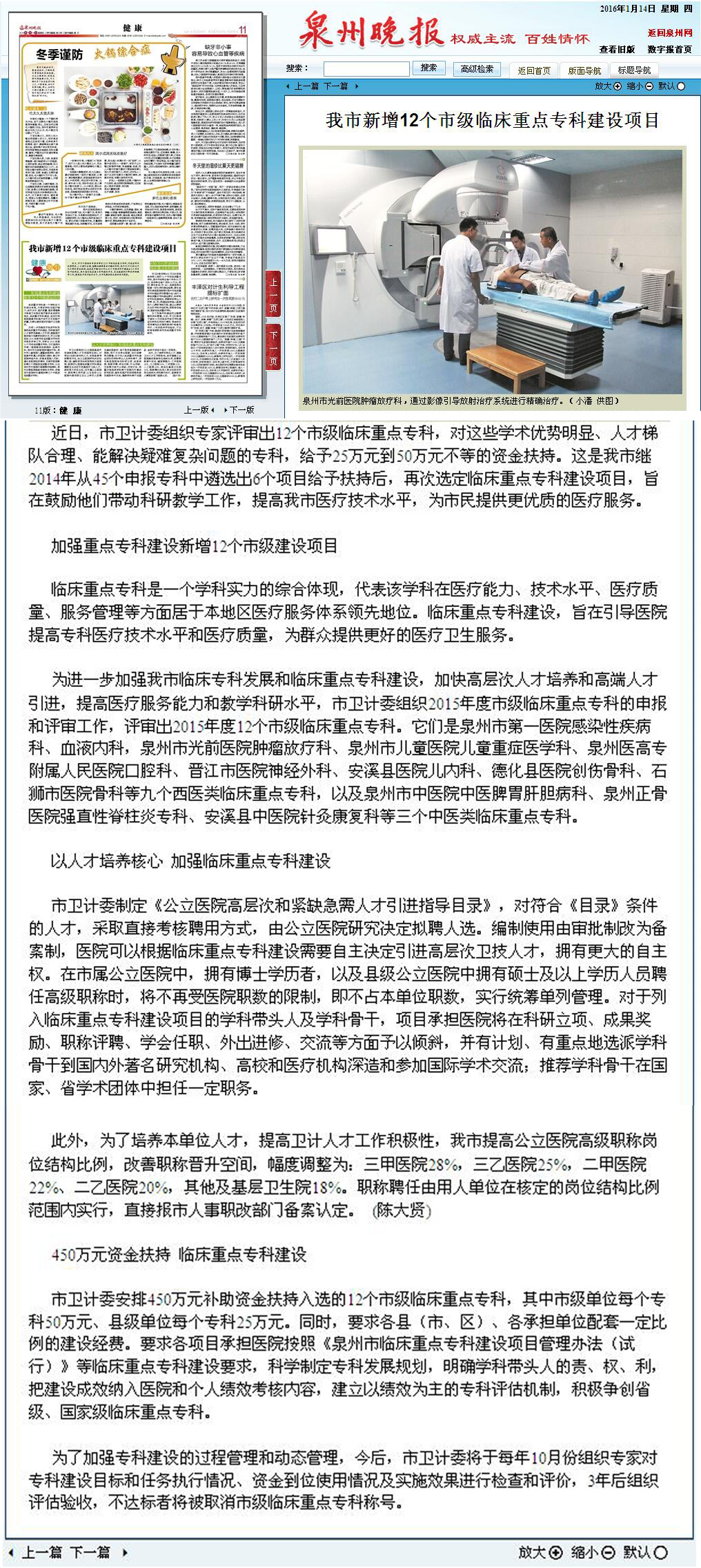 熱烈祝賀光前醫(yī)院放療科列入泉州市級(jí)重點(diǎn)專(zhuān)科!