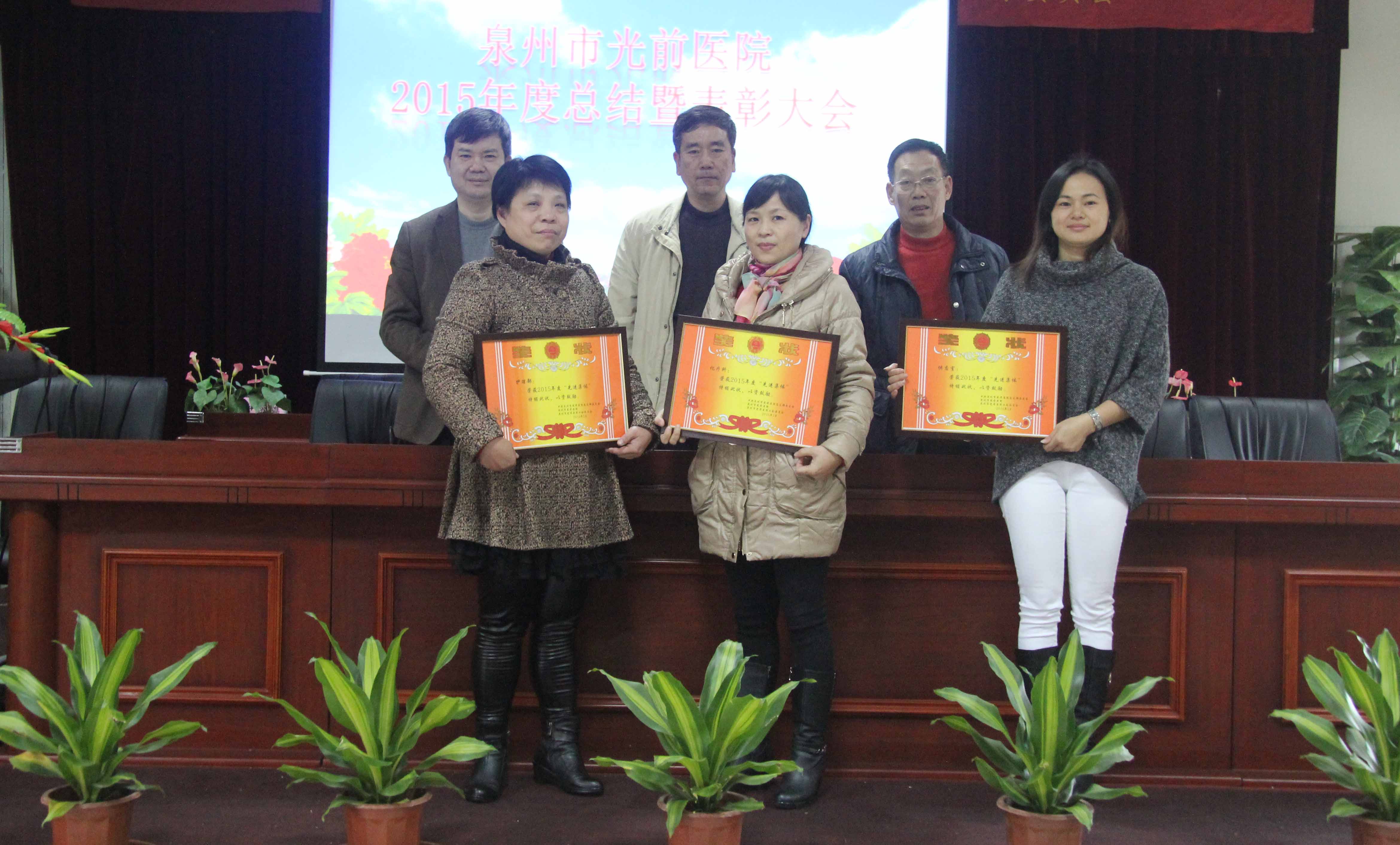 許院長(zhǎng)在回顧2015年醫(yī)院工作時(shí)指出:在全院?jiǎn)T工的共同努力下,過去的一年,醫(yī)院各項(xiàng)工作得以順利的開展和推進(jìn)。一是在診療業(yè)務(wù)方面,開展的外科系列微創(chuàng)手術(shù)、眼科白內(nèi)障超聲乳化術(shù)、系列惡性腫瘤介入化療術(shù),以及添置的德國(guó)西門子1.5T雙引擎磁共振(MRI)的投入使用,填補(bǔ)了相關(guān)診療業(yè)務(wù)空白,提升了本院的診療技術(shù)和服務(wù)水平,方便了周邊群眾的就近就醫(yī)。二是在學(xué)科學(xué)術(shù)方面,由本院首次承辦的“第七屆福建省腫瘤放射治療質(zhì)量控制培訓(xùn)班”于8月15日取得圓滿成功,有260多位腫瘤放療專家、學(xué)者和一線醫(yī)療工作者蒞會(huì),參會(huì)人數(shù)創(chuàng)歷屆之最;醫(yī)院腫瘤放療科在泉州市7家開展腫瘤放療技術(shù)醫(yī)院中唯一被確認(rèn)的泉州市級(jí)重點(diǎn)臨床???;醫(yī)院被省臨床檢驗(yàn)中心授予“2015年度福建省臨床檢驗(yàn)質(zhì)量控制工作先進(jìn)單位”、被省醫(yī)院感染管理質(zhì)量控制中心授予“2015年度福建省醫(yī)院感染橫斷面調(diào)查先進(jìn)單位”;在2015年度泉州市級(jí)新農(nóng)合定點(diǎn)醫(yī)療機(jī)構(gòu)考核評(píng)比中名列第一。三是在醫(yī)院運(yùn)營(yíng)方面,通過開展和落實(shí)“優(yōu)質(zhì)服務(wù)年”活動(dòng)、改善醫(yī)療服務(wù)三年行動(dòng)等,醫(yī)院服務(wù)滿意度有所提升,門診和住院病人同比穩(wěn)步增加,年業(yè)務(wù)收入同比略有提升。四是在醫(yī)院文化建設(shè)方面,在做好診療服務(wù),注重加強(qiáng)醫(yī)患溝通,推進(jìn)和諧醫(yī)院構(gòu)建的同時(shí),重視立足服務(wù),弘揚(yáng)美德,積極開展送醫(yī)送藥下鄉(xiāng)義診、健康咨詢、衛(wèi)生宣教等志愿服務(wù)活動(dòng);組織員工參與系列扶貧濟(jì)困、金秋助學(xué)、結(jié)對(duì)幫扶等“送溫暖、獻(xiàn)愛心”捐款捐物活動(dòng);發(fā)動(dòng)廣大員工踴躍參加無償獻(xiàn)血活動(dòng)等,得到社會(huì)各界和廣大群眾的贊揚(yáng)。2015年1月,劉江英同志榮獲昌吉回族自治州委員會(huì)、人民政府授予的“援疆工作先進(jìn)個(gè)人”;3月,泉州市直黨工委授予行政、醫(yī)技、腫瘤科等3個(gè)黨支部為“第十一輪先進(jìn)‘五好’黨支部”;4月,泉州市委、市政府授予ICU張小云護(hù)師“泉州市先進(jìn)工作者”;5月,福建省總工會(huì)授予工會(huì)主席潘黨勝“全省優(yōu)秀工會(huì)工作者”。