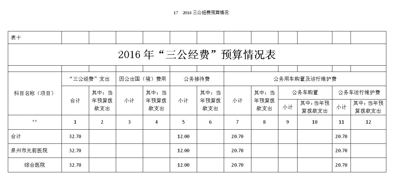泉州光前醫(yī)院2016年“三公經(jīng)費”預(yù)算公布