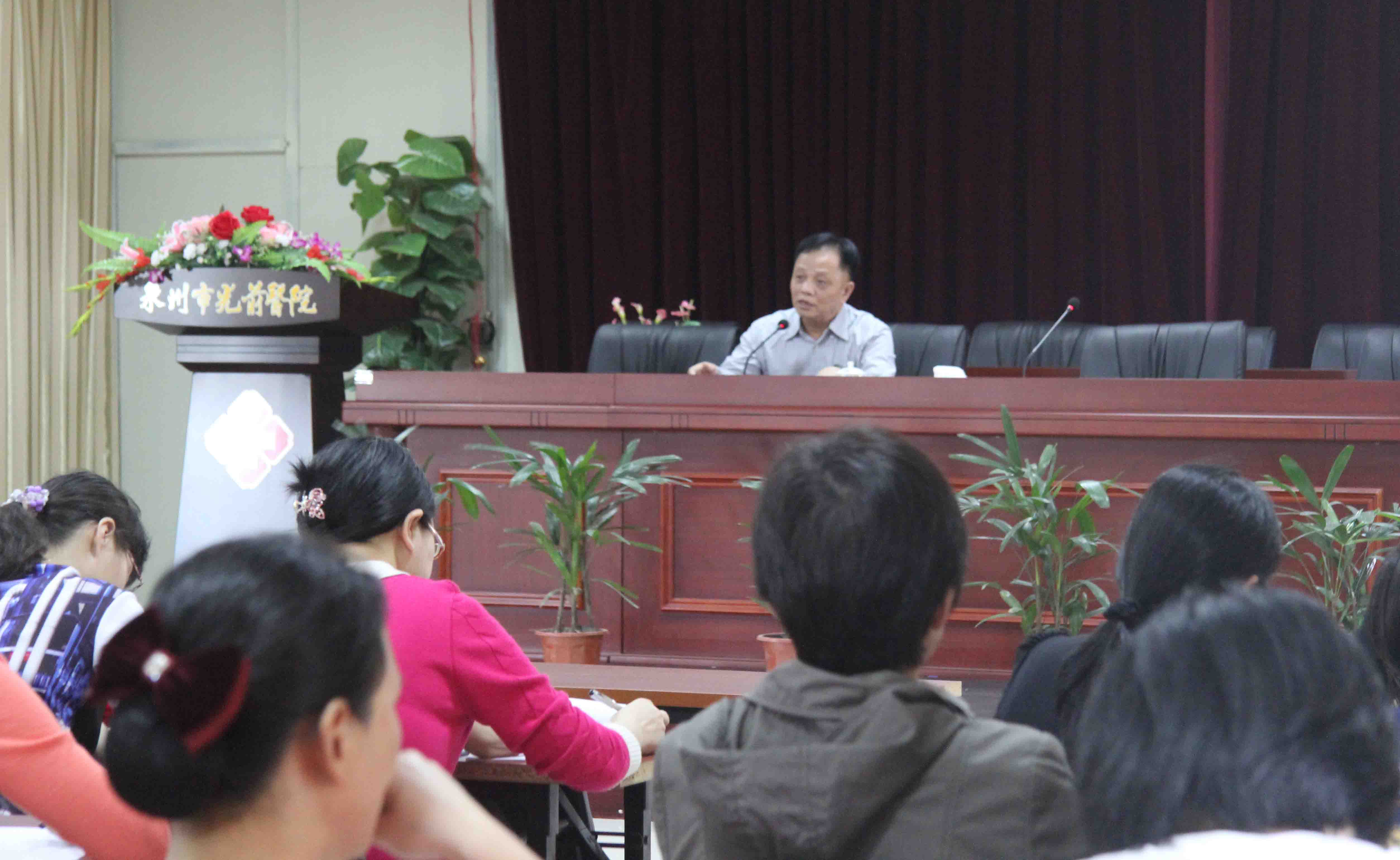 2016年4月27日下午,行政辦公樓四樓會議廳,我院全體黨員及中層以上干部共一百余人參加黨課教育。黨課由院黨總支青年委兼副院長洪慧良同志主持,十二屆全國人大代表、中國扶貧志愿服務(wù)促進會副會長、梅山鎮(zhèn)黨委副書記、蓉中村黨委書記李振生同志應(yīng)邀蒞院主講。