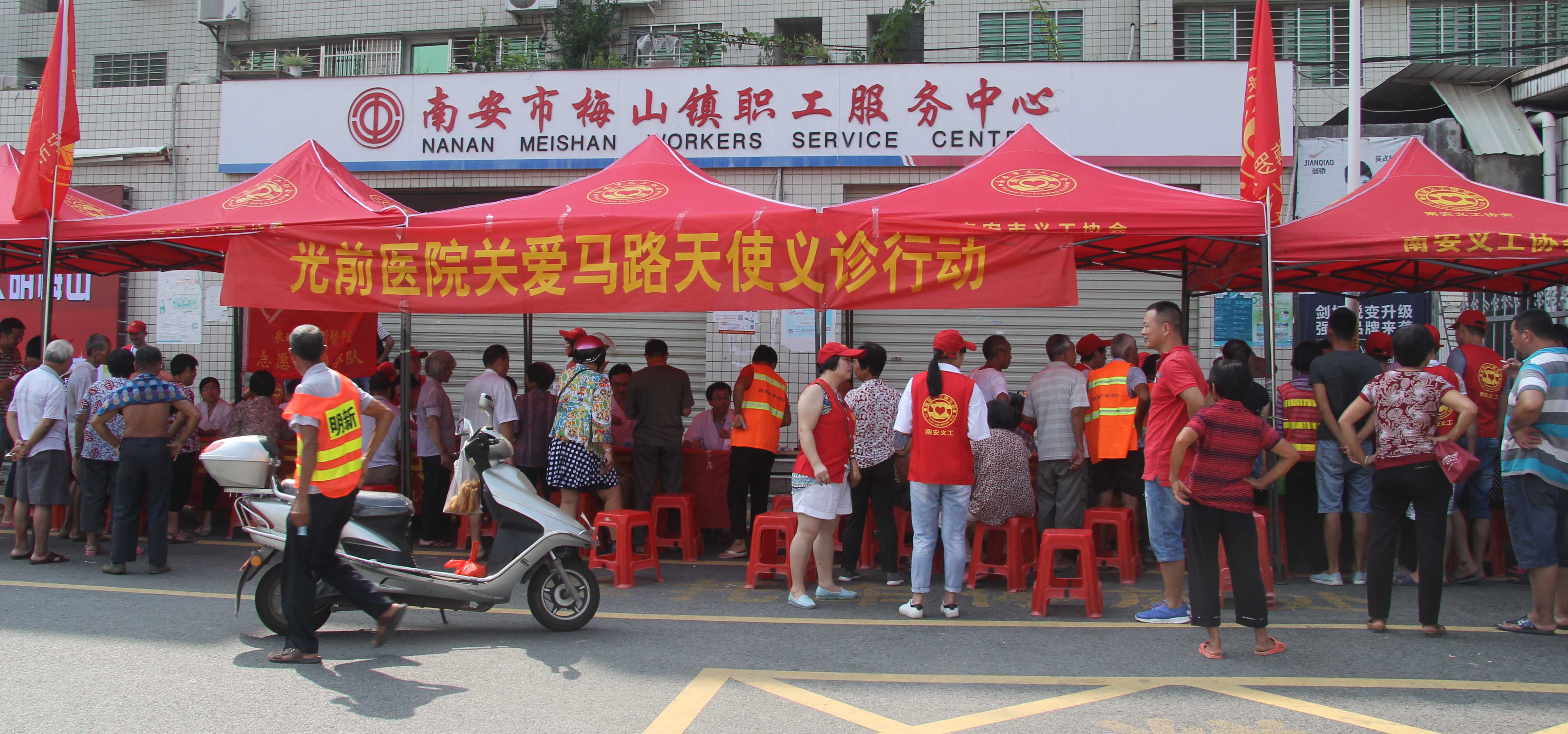 有一群人,他(她)們“在沒有硝煙的戰(zhàn)場,與時(shí)間賽跑,與死神抗?fàn)?/span>”,大醫(yī)精誠,守望生命,在履行救死扶傷神圣天職中被人們尊稱為“白衣天使”。還有一群人,他(她)們“寧愿一人臟,換來萬家潔”,不辭臟累,凈化家園,在履行環(huán)衛(wèi)保潔神圣職責(zé)中被人們尊稱為“馬路天使”。2016年6月16日,在南安義工協(xié)會(huì)和梅山鎮(zhèn)黨委的組織下,這兩群可愛的天使們走到了一起,“光前醫(yī)院關(guān)愛馬路天使義診行動(dòng)”在梅山鎮(zhèn)政府隆重開展。