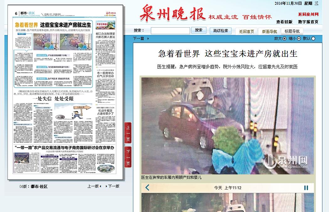 急著看世界 這些寶寶未進(jìn)產(chǎn)房就出生(《泉州晚報(bào)》)