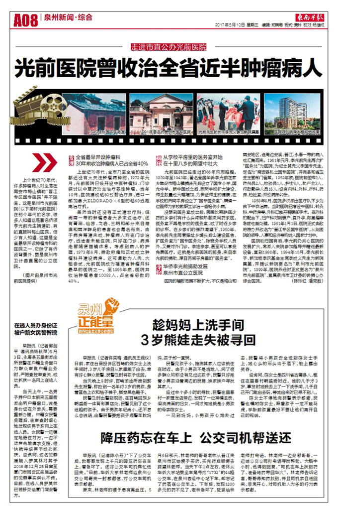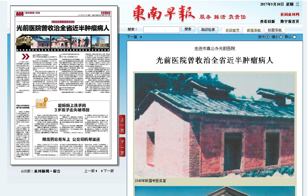 光前醫(yī)院曾收治全省近半腫瘤病人(《東南早報》)