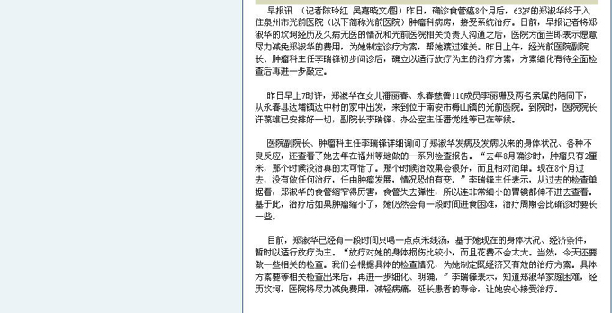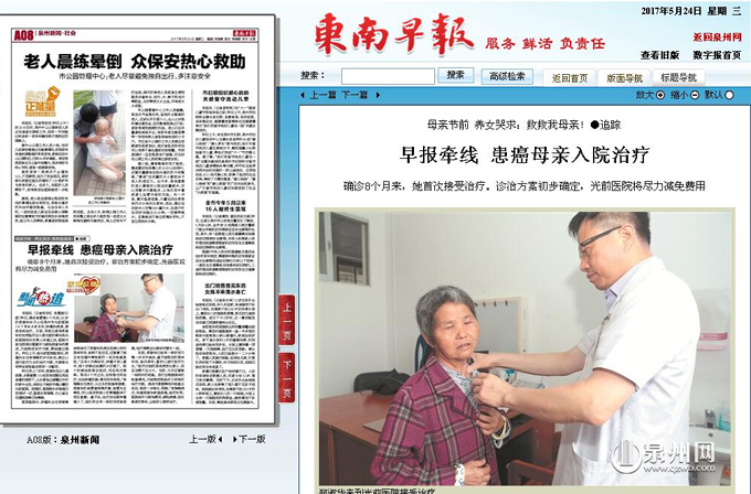 早報(bào)牽線 患癌母親入院治療(《東南早報(bào)》)