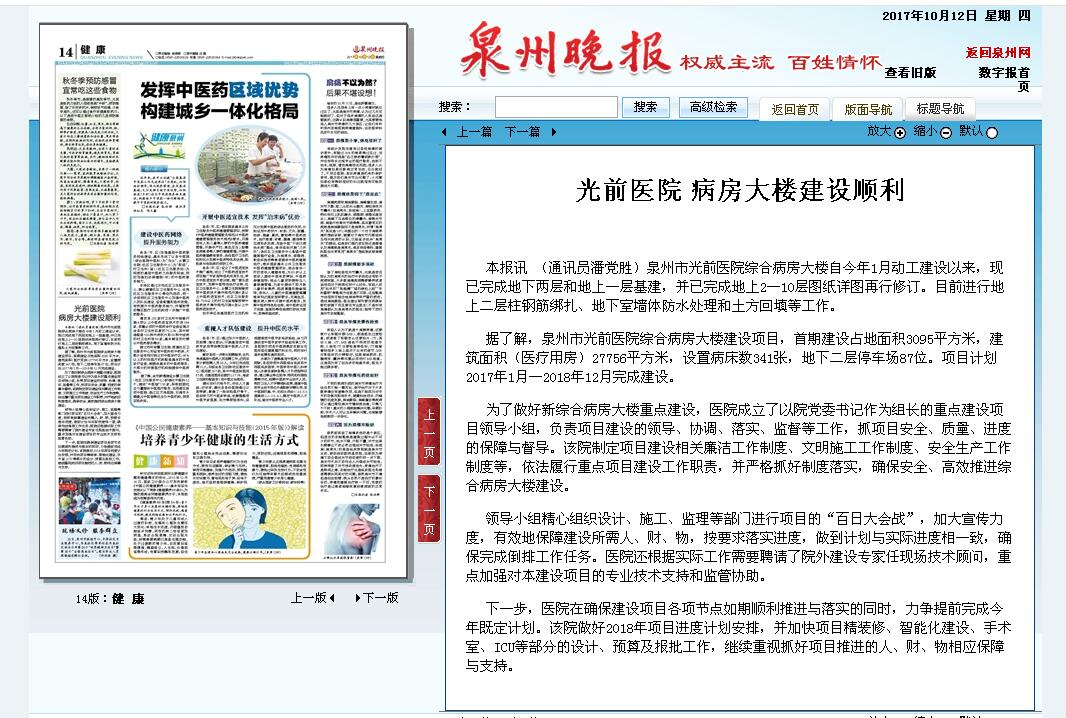 我院綜合病房大樓順利推進(《泉州晚報》)
