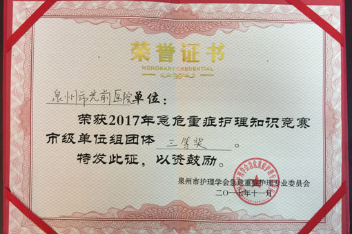 這是近年來(lái)我院護(hù)理部先后榮獲“泉州市巾幗文明崗”、“泉州市五一先鋒號(hào)”,以及選派2名手術(shù)室護(hù)士在全市20家醫(yī)院選派的42位選手參加的“泉州市‘月亮天使杯’手術(shù)室護(hù)理操作技能大賽”中首秀即分獲二等獎(jiǎng)和三等獎(jiǎng),急診科醫(yī)護(hù)骨干代表的本院參賽隊(duì)斬獲“泉州市2017年突發(fā)事件緊急醫(yī)學(xué)救援技能競(jìng)賽‘團(tuán)體三等獎(jiǎng)’”等榮譽(yù)的同時(shí),護(hù)理團(tuán)隊(duì)在全市學(xué)術(shù)競(jìng)賽中再獲佳績(jī)。