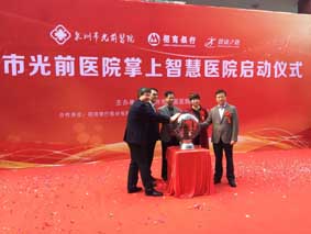 12月6日上午9:28,紅毯、彩旗、禮花紛飛、掌聲雷動(dòng),在泉州市光前醫(yī)院門(mén)診大樓前,我院黨委書(shū)記黃向陽(yáng)、副院長(zhǎng)李瑞鋒、副院長(zhǎng)李懷陽(yáng),以及福建健康之路總經(jīng)理邱雪霞、泉州市招商銀行行長(zhǎng)助理林志綱等共同啟動(dòng)了“掌上智慧平臺(tái)”。