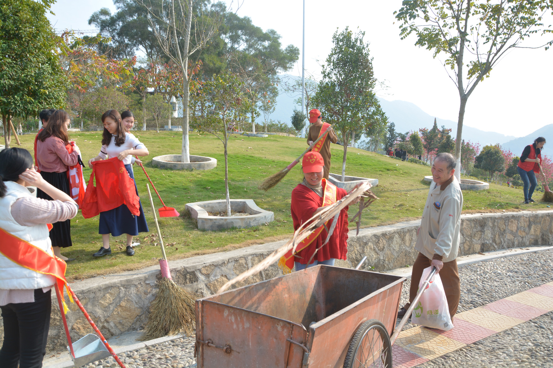 弘雷鋒精神,環(huán)保志愿行。我院西側(cè)的鰲峰公園桃花盛開(kāi),火了整個(gè)梅山的朋友圈,慕名前來(lái)賞花的游客絡(luò)繹不絕,給公園的清潔工作帶來(lái)很大壓力。3月13日下午,我院30余名黨團(tuán)員組成志愿服務(wù)團(tuán)到公園幫助清理垃圾。大家頂著烈日,興致勃勃地清掃道路兩旁的樹枝樹葉;撿拾路邊游客丟棄的廢紙塑料袋;清理路溝雜物和枯花敗葉,經(jīng)過(guò)數(shù)小時(shí)揮汗如雨的辛勞,公園環(huán)境煥然一新,每個(gè)人臉上洋溢出舒心的笑容。志愿者們用實(shí)際行動(dòng)宣傳環(huán)保理念,倡議大家共同建設(shè)美好家園,受到游客及周邊群眾的好評(píng)。