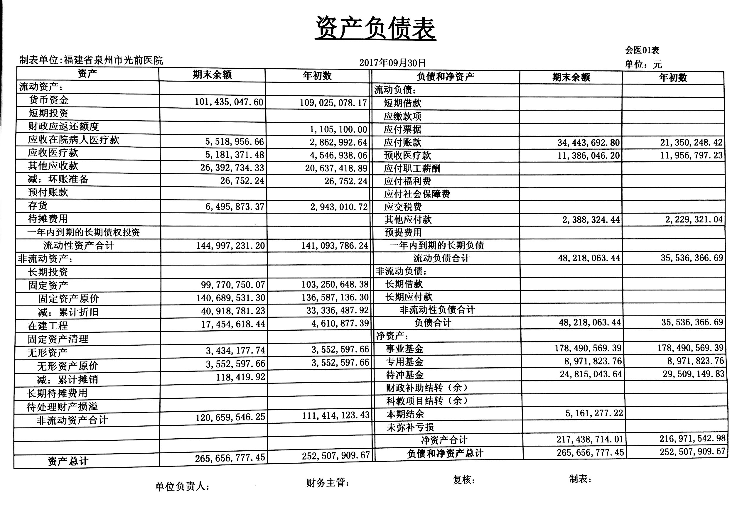 泉州市光前醫(yī)院2017年第三季度財(cái)務(wù)信息公開(kāi)