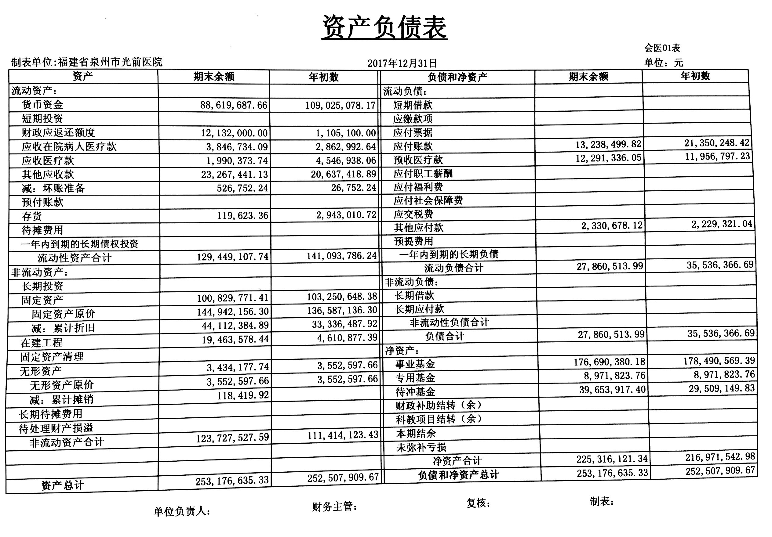 泉州市光前醫(yī)院2017年第四季度財務(wù)信息公開