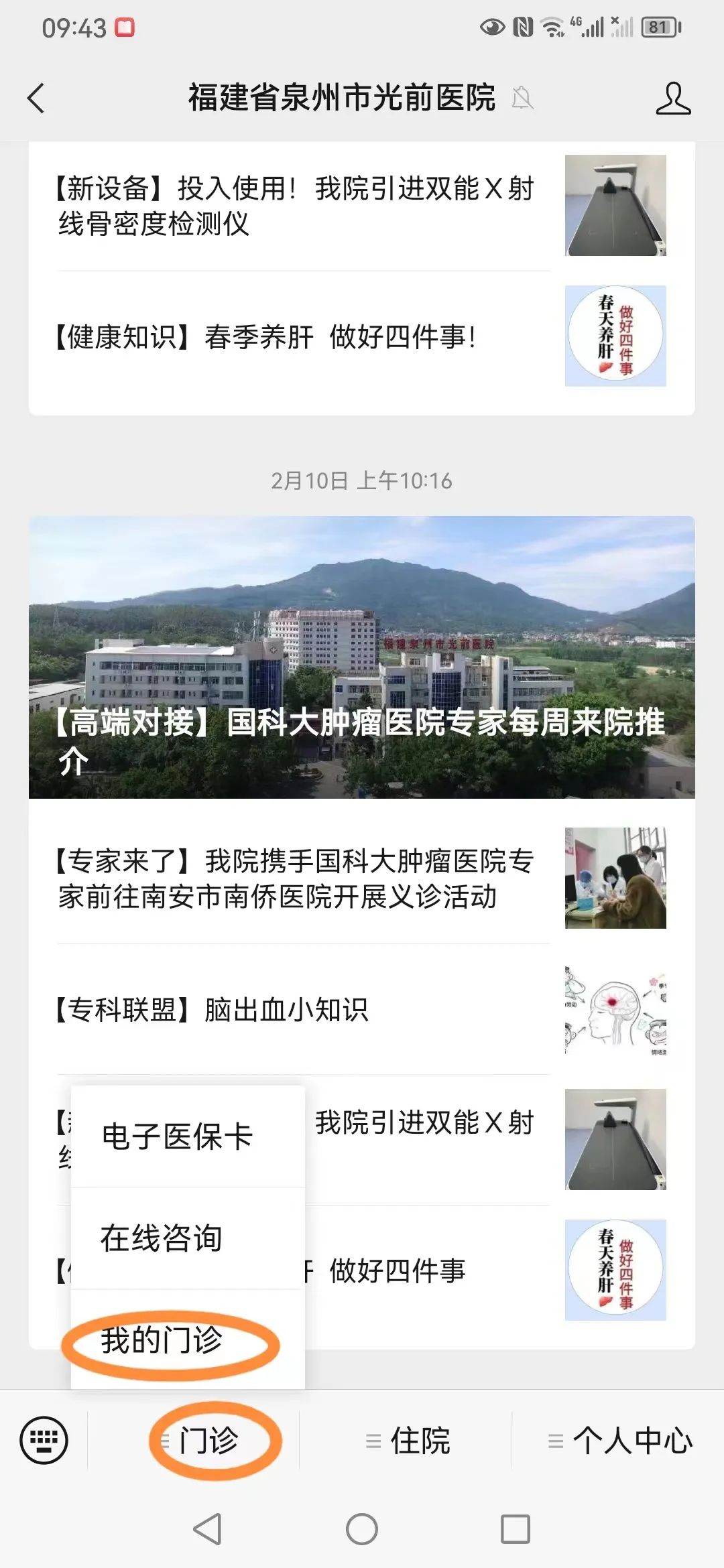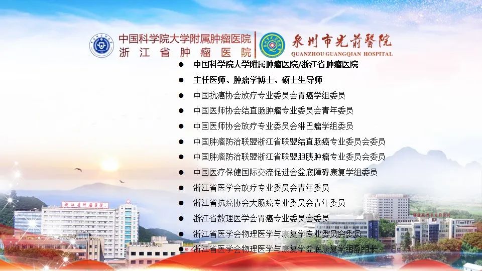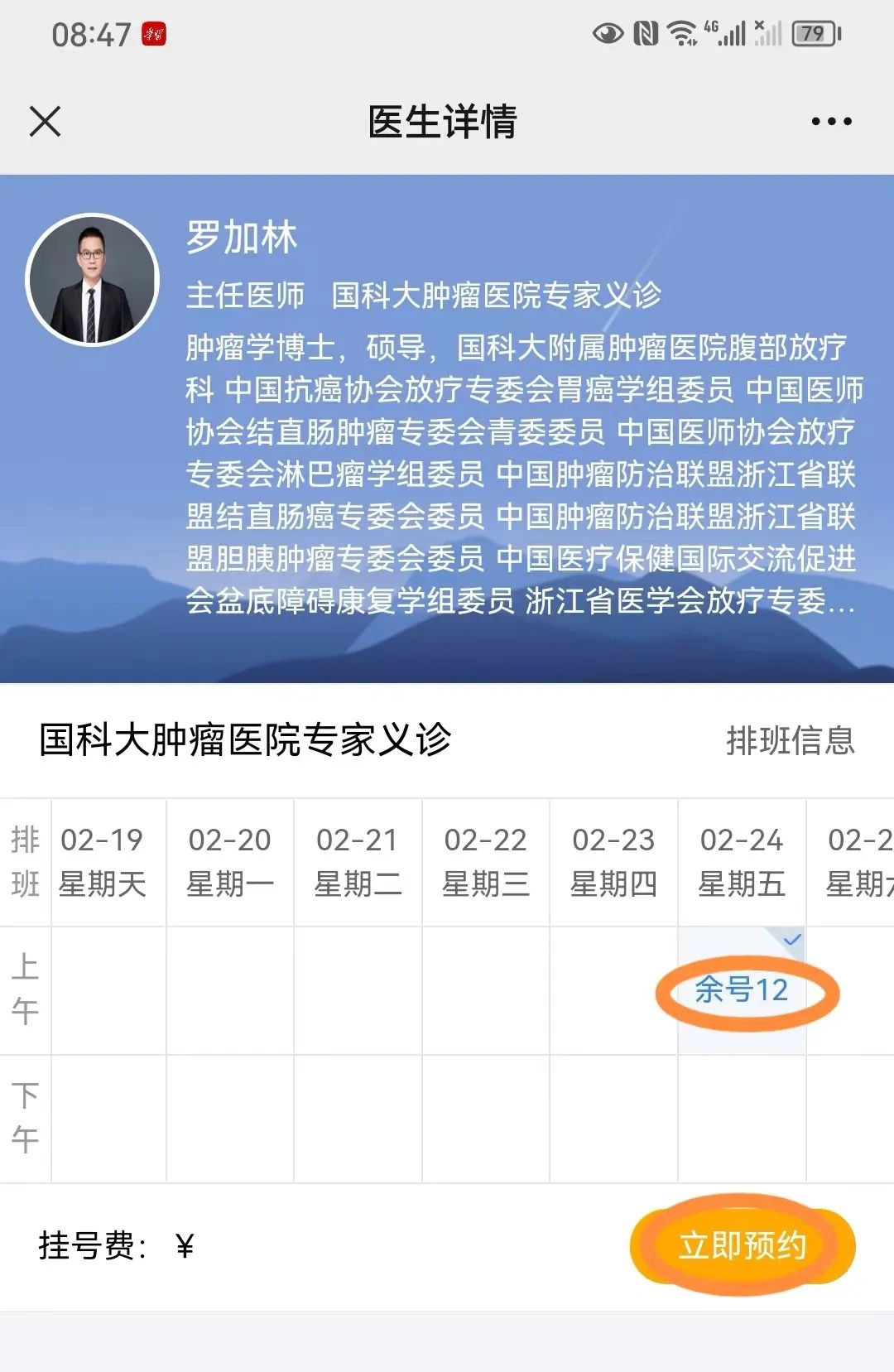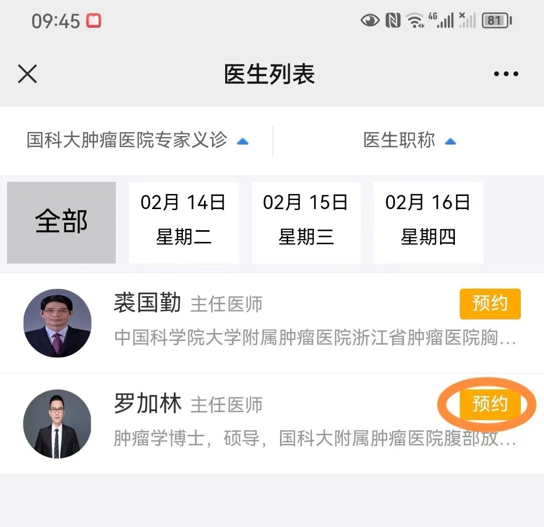 #2023 高端對接 ...... 2月24日—25日 中國科學院大學附屬腫瘤醫(yī)院 (浙江省腫瘤醫(yī)院) 主任醫(yī)師、腫瘤學博士、碩士生導師 羅加林 來院開展專家坐診、業(yè)務幫扶 主任醫(yī)師 博士、碩士生導師 ①掃描下方二維碼或微信搜索“福建省泉州市光前醫(yī)院”關注我院微信公眾號 ②點擊菜單欄“門診”——“我的門診” ③預約掛號 ④選擇“國科大腫瘤醫(yī)院專家義診” ⑤選擇專家進行預約 ⑥選擇就診人及預約號源,確認掛號 ? ? ? 請前來就診的患者攜帶就診卡(醫(yī)??ā⑥r??ǎ┘耙酝嚓P病歷、檢查報告、體檢報告等,以方便專家檢查。 END