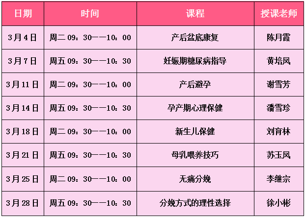 【孕婦學(xué)?!亢谩霸小毕喟椤袐D學(xué)校3月份課程安排表,請(qǐng)查收!